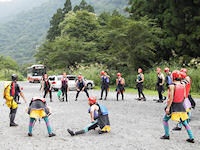 ツアーに出発する前にしっかり準備運動。ケガをしないように注意しましょう。
