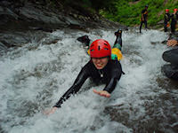 キャニオニングは自然の滝や沢をウォータースライダーに見立てて滑ったり滝つぼに飛び込んだりしながら川を下っていく比較的新しいリバースポーツです。